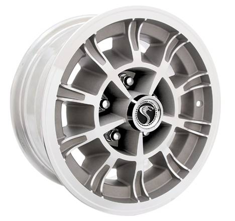 A reproduction of the classic 10 Spoke Alloy Wheel offered in 1966, the California Pony Cars wheel is the only correct 10 spoke 14 X 6.5 inch Style wheel on the market. Cast Aluminum media blast machined face finish. (Center Caps not included.)