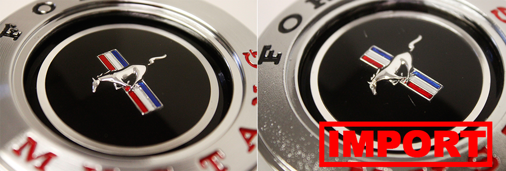 will find comparison photos that show distinct differences between our quality Steering Wheel Center Cap versus the cheap import. We hope this will educate the masses on