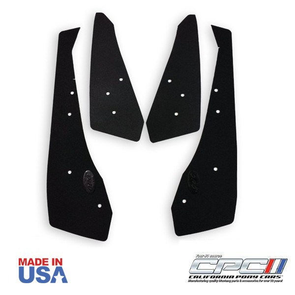 Our American made shields are made from durable ABS plastic material and are precisely cut to the shape of your Mustangs wheel well openings and grab the fender edge firmly and securely.