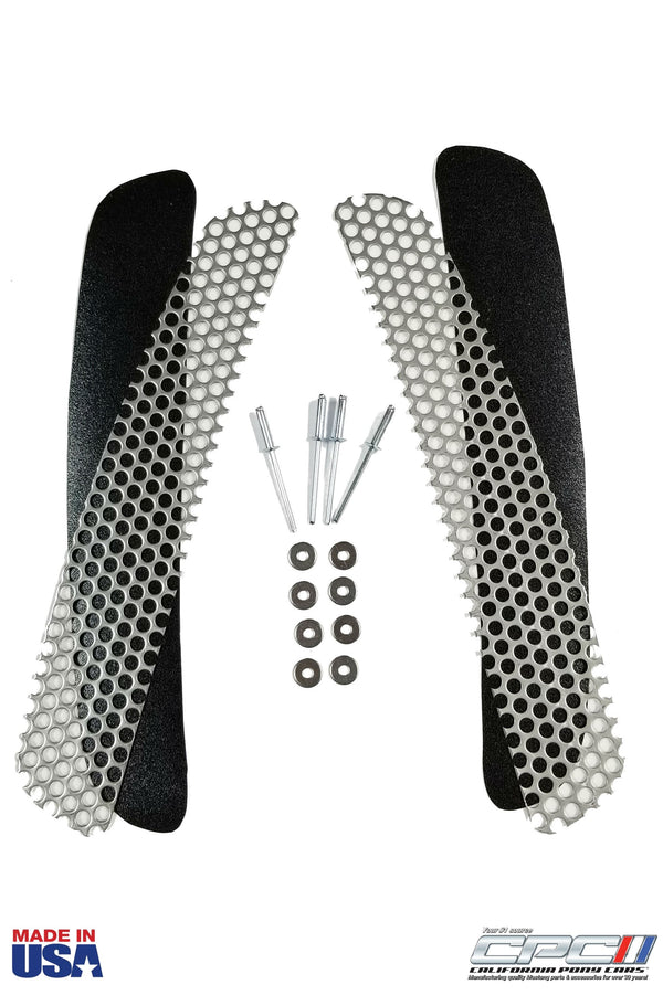 Designed to replicate the appearance of functional Shelby side scoops, this kit provides a clean, finished look while maintaining originality. Each grille insert is secured using the included aluminum rivets and washers, ensuring a factory-style installation.
